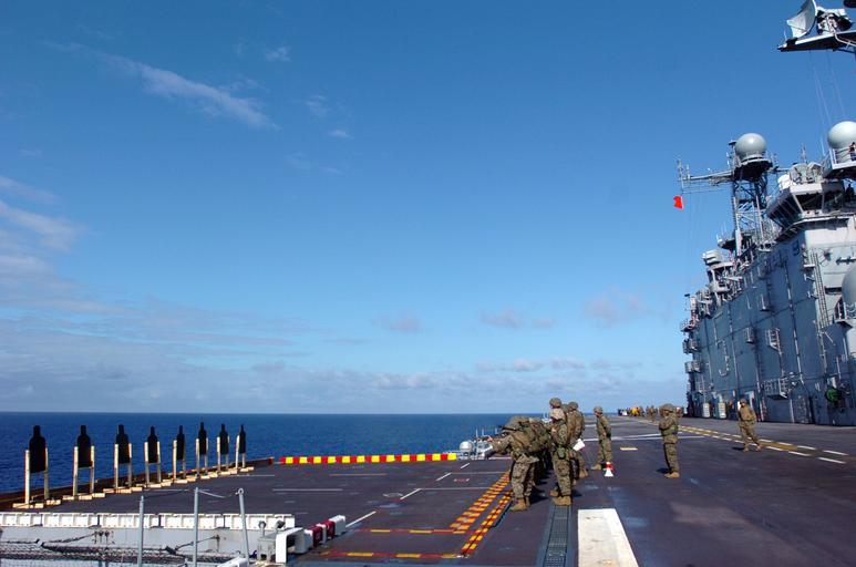 Keywords: US Navy 050622-N-9866B-016 U.S. Marines, assigned to the 3rd Amphibious Assault Battalion, fire their M-16 rifles during a live-free weapon shoot on the flight deck aboard the amphibious assault ship USS Peleliu (LHA 5).jpg en Pacific Ocean June 22 2005 U S Marines assigned to the 3rd Amphibious Assault Battalion fire their M-16 rifles during a live-free weapon shoot on the flight deck aboard the amphibious assault ship USS Peleliu LHA 5 U S Navy photo by Journalist 2nd Class Zack Baddorf RELEASED 2005-06-22 050622-N-9866B-016 Navy http //www navy mil/view_image asp id 25558 U S Navy photo by Journalist 2nd Class Zack Baddorf PD-USGov-Military-Navy Aboard USS Peleliu LHA-5 3rd_Assault_Amphibian_Battalion |