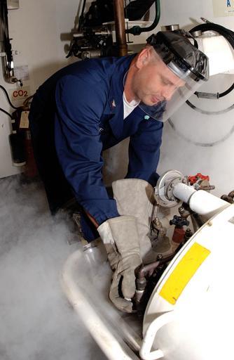 | Keywords: US Navy 050624-N-0413R-004 Machinist's Mate 3rd Class Rudy Aye transfers liquid oxygen (LOX) into a TMU-70 LOX Cart aboard the nuclear-powered aircraft carrier USS Nimitz (CVN 68).jpg en Pacific Ocean June 24 2005 - Machinist's Mate 3rd Class Rudy Aye transfers liquid oxygen LOX into a TMU-70 LOX Cart aboard the nuclear-powered aircraft carrier USS Nimitz CVN 68 The cart is used to store oxygen for pilots and aircrew's breathing systems in aircraft The Nimitz Carrier Strike Group is currently on a regularly scheduled deployment in support of the Global War on Terrorism U S Navy photo by Photographer's Mate 3rd Class Shannon E Renfroe RELEASED 2005-06-24 050624-N-0413R-004 Navy http //www navy mil/view_image asp id 25630 U S Navy photo by Photographer's Mate 3rd Class Shannon E Renfroe PD-USGov-Military-Navy Aboard USS Nimitz CVN-68 |