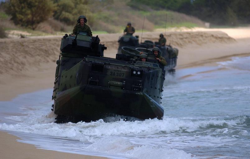 Keywords: US Navy 050628-N-9866B-010 U.S. Marines assigned to 3rd Amphibious Assault Battalion, drive their Amphibious Assault Vehicles (AAVs) down the beach.jpg en Kauai Hawaii June 28 2005 - U S Marines assigned to 3rd Amphibious Assault Battalion drive their Amphibious Assault Vehicles AAVs down the beaches of Major's Bay during amphibious training Sailors and Marines assigned to the amphibious assault ship USS Peleliu LHA 5 are currently conducting amphibious training on the beaches of Pacific Missile Range Facility on the island of Kauai Hawaii U S Navy photo by Journalist 2nd Class Zack Baddorf RELEASED 2005-06-28 050628-N-9866B-010 Navy http //www navy mil/view_image asp id 25806 U S Navy photo by Journalist 2nd Class Zack Baddorf PD-USGov-Military-Navy Pacific Missile Range Facility Barking Sands Amphibious Assault Vehicle 3rd_Assault_Amphibian_Battalion |