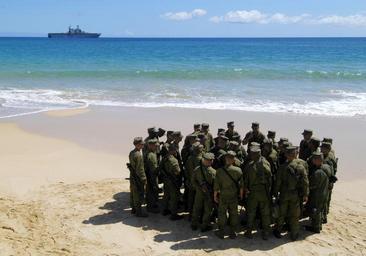 Keywords: US Navy 050629-N-1397H-079 U.S. Marines assigned to the 3rd Amphibious Assault Battalion based out of Camp Pendleton, Calif., gather around for a brief before launching Amphibious Assault Vehicles (AAVs) from the beach.jpg en Kauai Hawaii June 29 2005 U S Marines assigned to the 3rd Amphibious Assault Battalion based out of Camp Pendleton Calif gather around for a brief before launching Amphibious Assault Vehicles AAVs from the beach for their return to the amphibious assault ship USS Peleliu LHA 5 following an overnight training exercise at the Pacific Missile Range Facility U S Navy photo by Photographer s Mate 2nd Class Prince A Hughes III RELEASED 2005-06-29 050629-N-1397H-079 Navy http //www navy mil/view_image asp id 26017 U S Navy photo by Photographer s Mate 2nd Class Prince A Hughes III PD-USGov-Military-Navy Pacific Missile Range Facility Barking Sands 3rd_Assault_Amphibian_Battalion |