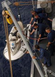 Keywords: US Navy 050712-N-4374S-014 Sailors assigned to Fleet Composite Squadron Six (VC-6), hoist a Ship Deployable Surface Target (SDST) aboard the guided missile frigate USS Samuel B. Roberts (FFG 58).jpg en Pacific Ocean July 12 2005 Sailors assigned to Fleet Composite Squadron Six VC-6 hoist a Ship Deployable Surface Target SDST aboard the guided missile frigate USS Samuel B Roberts FFG 58 during UNITAS 46-05 Pacific Phase Samuel B Roberts is part of a multinational naval and coast guard force from six nations conducting UNITAS 46-05 Pacific Phase off the coasts of Colombia The Colombian Navy in this year s UNITAS Pacific Phase hosts Ecuador Panama Peru and the United States During the two-week exercise participating units have the opportunity to train as unified force in all aspects of naval operations from maritime interdiction to anti-submarine and electronic warfare U S Naval Forces Southern Command sponsors UNITAS exercises with the objective to foster cooperation and develop interoperability among the navies of the region U S Navy photo by Photographer s Mate 2nd Class Michael Sandberg RELEASED 2005-07-12 050712-N-4374S-014 Navy http //www navy mil/view_image asp id 26239 U S Navy photo by Photographer s Mate 2nd Class Michael Sandberg PD-USGov-Military-Navy Aboard USS Samuel B Roberts FFG-58 |