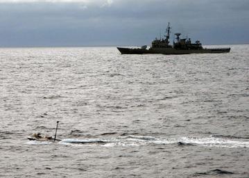 Keywords: US Navy 050712-N-4374S-018 A Ship Deployable Surface Target (SDST), assigned to Fleet Composite Squadron Six (VC-6) and USS Samuel B. Roberts (FFG 58), cruises near the Peruvian Navy frigate Carvajal (FM 51).jpg en Pacific Ocean July 12 2005 - A Ship Deployable Surface Target SDST assigned to Fleet Composite Squadron Six VC-6 and USS Samuel B Roberts FFG 58 cruises near the Peruvian Navy frigate Carvajal FM 51 during a training exercise in the Pacific Ocean Samuel B Roberts is part of a multinational naval and coast guard force from six nations conducting UNITAS 46-05 Pacific Phase off the coasts of Colombia The Colombian Navy in this year s UNITAS Pacific Phase hosts Ecuador Panama Peru and the United States During the two-week exercise participating units have the opportunity to train as unified force in all aspects of naval operations from maritime interdiction to anti-submarine and electronic warfare U S Naval Forces Southern Command sponsors UNITAS exercises with the objective to foster cooperation and develop interoperability among the navies of the region U S Navy photo by Photographer s Mate 2nd Class Michael Sandberg RELEASED 2005-07-12 050712-N-4374S-018 Navy http //www navy mil/view_image asp id 26241 U S Navy photo by Photographer s Mate 2nd Class Michael Sandberg PD-USGov-Military-Navy USS Samuel B Roberts FFG-58 Navy of Peru |