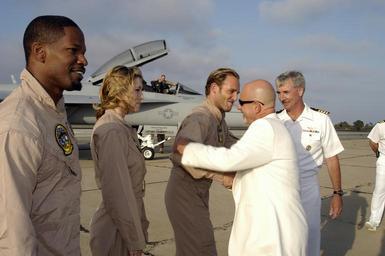 Keywords: US Navy 050717-N-7281D-025 Director Rob Cohen and Commanding Officer, Naval Air Station North Island, Capt. T. G. Alexander, greet the cast of the major motion picture movie Stealth.jpg en San Diego July 17 2005 Director Rob Cohen and Commanding Officer Naval Air Station North Island Capt T G Alexander greet the cast of the major motion picture movie Stealth starring Jamie Foxx Jessica Biel and Josh Lucas The Hollywood premier screening was held aboard Naval Air Station North Island The U S Navy supported the production and portions of the movie were shot aboard several Navy vessels including the nuclear powered aircraft carriers USS Nimitz CVN 68 USS John C Stennis CVN 74 and USS Abraham Lincoln CVN 72 U S Navy photo by Photographer s Mate 2nd Class LaQuisha S Davis RELEASED 2005-07-17 050717-N-7281D-025 Navy http //www navy mil/view_image asp id 26298 U S Navy photo by Photographer s Mate 2nd Class LaQuisha S Davis PD-USGov-Military-Navy Jamie Foxx Jessica Biel Josh Lucas Aboard USS Abraham Lincoln CVN-72 Guests at Naval Air Station North Island Rob Cohen Film premieres in the United States |