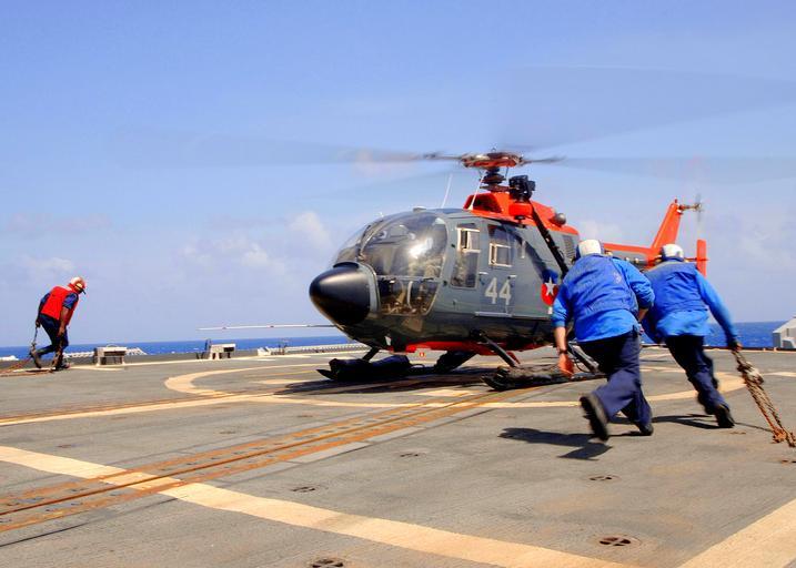 | Keywords: US Navy 050718-N-4374S-009 Flight deck personnel assigned to the guided missile cruiser USS Thomas S. Gates (CG 51) hustles to secure a Chilean BO 105C helicopter during a helicopter cross deck training.jpg  en Caribbean Sea July 18 2005 - Flight deck personnel assigned to the guided missile cruiser USS Thomas S Gates CG 51 hustles to secure a Chilean BO 105C helicopter during a helicopter cross deck training exercise in the Caribbean Sea Thomas S Gates is part of a multinational naval and coast guard force from six nations conducting UNITAS 46-05 Pacific Phase off the coasts of Colombia The Colombian Navy in this year's UNITAS Pacific Phase hosts Ecuador Panama Peru and the United States During the two-week exercise participating units have the opportunity to train as unified force in all aspects of naval operations from maritime interdiction to anti-submarine and electronic warfare U S Naval Forces Southern Command sponsors UNITAS exercises with the objective to foster cooperation and develop interoperability among the navies of the region U S Navy photo by Photographer's Mate 2nd Class Michael Sandberg RELEASED 2005-07-18 050718-N-4374S-009 Navy http //www navy mil/view_image asp id 26399 U S Navy photo by Photographer's Mate 2nd Class Michael Sandberg PD-USGov-Military-Navy Eurocopter Bo 105 Aircraft of the navy of Chile USS Thomas S Gates CG-51 |