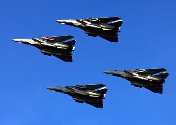 Keywords: US Navy 050719-N-5345W-070 Four F-14B Tomcats perform a diamond formation fly-by.jpg en Atlantic Ocean July 19 2005 Four F-14B Tomcats assigned to the Swordsmen of Fighter Squadron Three Two VF-32 perform a diamond formation fly-by at the conclusion of Carrier Air Wing Three CVW-3 fly-off aboard the Nimitz-class aircraft carrier USS Harry S Truman CVN 75 The current underway-period marks the final time the F-14 Tomcat will take part in flight operations while embarked aboard Truman VF-32 will shortly begin the process of transitioning to the newer F/A-18F Super Hornet Truman is currently conducting carrier qualifications and operations off the East Coast and is also participating in a Joint Task Force Exercise JTFEX with USS Theodore Roosevelt CVN 71 JTFEX is a key component in the training cycle of an aircraft carrier and carrier air wing in the U S Navy Fleet Response Plan U S Navy photo by Photographer's Mate 3rd Class Kristopher Wilson RELEASED 2005-07-19 050719-N-5345W-070 Navy http //www navy mil/view_image asp id 26386 U S Navy photo by Photographer's Mate 3rd Class Kristopher Wilson PD-USGov-Military-Navy Aircraft formation flight of F-14B Tomcat Fighter Squadron 32 United States Navy |