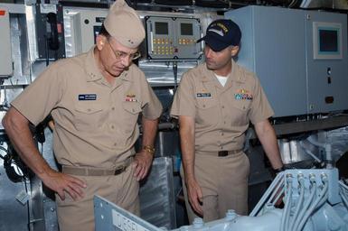Keywords: US Navy 050719-N-9293K-002 Lt. Cmdr. Brandon S. Bryan, right, shows Vice Commander, Naval Sea Systems Command, Rear Adm. Anthony Lengerich two MTU 595 diesel engines and explains how they work.jpg en Everett Wash July 19 2005 - Commanding Officer of the Navy's newest ship christened X-Craft Sea Fighter FSF-1 Lt Cmdr Brandon S Bryan right shows Vice Commander Naval Sea Systems Command Rear Adm Anthony Lengerich two MTU 595 diesel engines and explains how they work The tour was in conjunction with the American Society Of Engineers conference demonstrating the overall process of how the X-Craft operates The crew is made up of 16 U S Navy Sailors and 10 U S Coast Guard Sailors who are permanently assigned to the ship The Sea Fighter X-Craft FSF-1 will soon be heading to their homeport of San Diego for the first time U S Navy photo by Photographer's Mate 3rd Class Jacob J Kirk RELEASED 2005-07-19 050719-N-9293K-002 Navy http //www navy mil/view_image asp id 26408 U S Navy photo PD-USGov-Military-Navy Naval Station Everett Sea Fighter ship 2005 MTU diesel engines |