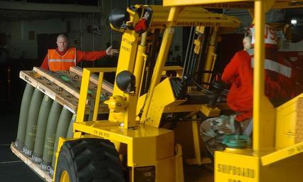 Keywords: US Navy 050719-N-9866B-018 Aviation Ordnanceman 1st Class William Jansen, left, directs one of his Aviation Ordnanceman Airmen to bring ammunition to a hangar bay elevator.jpg en Pacific Ocean July 19 2005 Aviation Ordnanceman 1st Class William Jansen left directs one of his Aviation Ordnanceman Airmen to bring ammunition to a hangar bay elevator aboard the amphibious assault ship USS Peleliu LHA 5 Four Seahawks and two landing crafts utility LCUs transferred ammunition from the multipurpose amphibious assault ship USS Bonhomme Richard LHD 6 to Peleliu during an ammunition on load off the coast of Southern California Peleliu is preparing for an upcoming Western Pacific deployment U S Navy photo by Journalist 2nd Class Zack Baddorf RELEASED 2005-07-19 050719-N-9866B-018 Navy http //www navy mil/view_image asp id 26430 U S Navy photo by Journalist 2nd Class Zack Baddorf PD-USGov-Military-Navy Aviation Ordnanceman Aboard USS Bonhomme Richard LHD-6 |