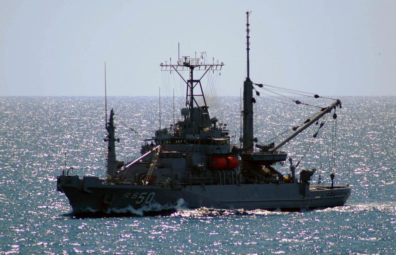 Keywords: US Navy 050724-N-4772B-022 The rescue and salvage ship USS Safeguard (ARS 50) makes her way through the Java Sea en route to Surabaya, Indonesia for the fourth phase of the 2005 Cooperation Afloat Readiness and Training (CARAT).jpg en Java Sea July 24 2005 - The rescue and salvage ship USS Safeguard ARS 50 makes her way through the Java Sea en route to Surabaya Indonesia for the fourth phase of the 2005 Cooperation Afloat Readiness and Training CARAT exercise Safeguard is part of a three-ship task group including the dock landing ship USS Harpers Ferry LSD 49 and guided missile frigate USS Rodney M Davis FFG 60 that will take part in CARAT Indonesia beginning July 25 CARAT is a regularly scheduled series of bilateral military training exercises with several Southeast Asia nations designed to enhance interoperability of the respective sea services U S Navy photo by Journalist 2nd Class Brian P Biller RELEASED 2005-07-24 050724-N-4772B-022 Navy http //www navy mil/view_image asp id 26523 U S Navy photo by Journalist 2nd Class Brian P Biller PD-USGov-Military-Navy USNS Safeguard T-ARS-50 Java Sea |