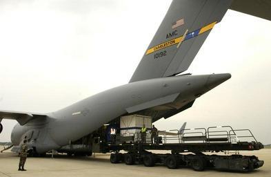 | Keywords: US Navy 050805-F-M8968-015 Deep Drone ROV is prepared for deployment.jpg  en Andrews Air Force Base AFB Md August 5 2005 - Members of the 89th Aerial Port Squadron APS Andrews AFB and 32nd APS Air Reserve Squadron Pittsburgh Pa load Deep Drone 8000 onto a C-17 Globemaster III from Charleston South Carolina The U S Navy Supervisor of Salvage and Diving SUPSALV is deploying a Deep Drone 8000 Remotely Operated Vehicle ROV capable of operating at a depth up to 8000 feet The Deep Drone 8000 has a target locating sonar and two tool manipulators capable of working with tools and attaching rigging The Navy and Air Force are transporting Deep Drone in an effort to assist the rescue of seven Russian Sailors trapped on the ocean floor in a mini-submarine off the Kamchatka Peninsula U S Air Force photo by SSgt Christopher J Matthews RELEASED 050805-F-M8968-015 Navy http //www navy mil/view_image asp id 26916 U S Navy photo PD-USGov-Military-Navy Joint Base Andrews Naval Air Facility Transport of vehicles by Boeing C-17 Globemaster III Deep Drone 01-0192 aircraft  |