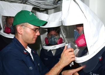 | Keywords: US Navy 050806-N-3293G-012 Boatswain's Mate 2nd Class Robert Persi conducts a respiratory fitting test on Sailors aboard the amphibious assault ship USS Tarawa (LHA 1).jpg en Celebes Sea Aug 6 2005 - Boatswain's Mate 2nd Class Robert Persi conducts a respiratory fitting test on Sailors aboard the amphibious assault ship USS Tarawa LHA 1 Petty Officer Persi is spraying saccharine a harmless substance into the hood to test for leaks while Sailors are being fitted for correct size Saccharine produces a harmless odor when inhaled Tarawa is the flagship for Expeditionary Strike Group One ESG-1 currently on a regularly scheduled Western Pacific deployment in support of the Global War on Terrorism U S Navy photo by Photographer s Mate Airman Apprentice Shannon K Garcia RELEASED 2005-08-06 050806-N-3293G-012 Navy http //www navy mil/view_image asp id 26954 U S Navy photo by Photographer s Mate Airman Apprentice Shannon K Garcia PD-USGov-Military-Navy Images from US Navy location Celebes Sea |