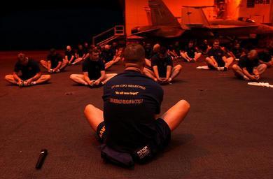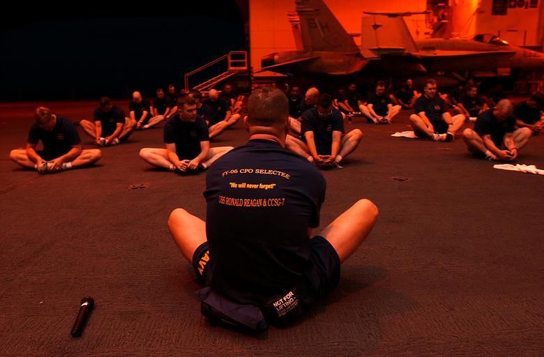| Keywords: US Navy 050810-N-7130B-019 New chief petty officer (CPO) selectee, Hospital Corpsman 1st Class Reese Ritter leads early morning physical training.jpg en Pacific Ocean Aug 10 2005 New chief petty officer CPO selectee Hospital Corpsman 1st Class Reese Ritter leads early morning physical training for other newly CPO selectees in the hangar bay aboard the Nimitz-class aircraft carrier USS Ronald Reagan CVN 76 Reagan is currently underway conducting carrier qualifications for the West Coast Fleet Replacement Squadrons U S Navy photo by Photographer's Mate 3rd Class Aaron Burden RELEASED 2005-08-10 050810-N-7130B-019 Navy http //www navy mil/view_image asp id 27074 U S Navy photo by Photographer's Mate 3rd Class Aaron Burden PD-USGov-Military-Navy Hospital Corpsman Exercise aboard USS Ronald Reagan CVN-76 |
