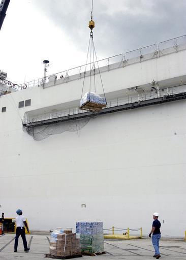 Keywords: US Navy 050905-N-1550W-012 Personnel load relief supplies onto the Military Sealift Command (MSC) hospital ship USNS Comfort (T-AH 20) while in port on board Naval Station Mayport, Fla.jpg en Mayport Fla Sept 5 2005 Personnel load relief supplies onto the Military Sealift Command MSC hospital ship USNS Comfort T-AH 20 while in port on board Naval Station Mayport Fla Comfort will transport the relief supplies to the victims of Hurricane Katrina The Navy's involvement in the Hurricane Katrina humanitarian assistance operations is led by the Federal Emergency Management Agency FEMA in conjunction with the Department of Defense U S Navy photo by Photographer's Mate 2nd Class Elizabeth Williams RELEASED 2005-09-05 050905-N-1550W-012 Navy http //www navy mil/view_image asp id 27775 U S Navy photo by Photographer's Mate 2nd Class Elizabeth Williams PD-USGov-Military-Navy Aboard USNS Comfort T-AH-20 Naval Station Mayport |