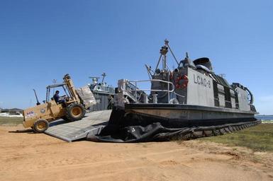 | Keywords: US Navy 050907-N-5328N-647 A U.S. Navy Landing Craft, Air Cushion (LCAC) is loaded with emergency relief supplies of water and food to assist in the humanitarian effort following the devastating aftermath of Hurricane Katrina.jpg en Pensacola Fla Sept 7 2005 A U S Navy Landing Craft Air Cushion LCAC is loaded with emergency relief supplies of water and food to assist in the humanitarian effort following the devastating aftermath of Hurricane Katrina The LCAC landed on Barrancas Beach on board Naval Air Station Pensacola and is currently operating from the amphibious assault ship USS Bataan LHD 5 which is in the Gulf of Mexico to support the hurricane relief effort The Navy s involvement in the Hurricane Katrina humanitarian assistance operations is led by the Federal Emergency Management Agency FEMA in conjunction with the Department of Defense NES rentals Case 586E forklift U S Navy photo by Mr Gary Nichols RELEASED 2005-09-07 050907-N-5328N-647 Navy http //www navy mil/view_image asp id 27956 U S Navy photo by Mr Gary Nichols PD-USGov-Military-Navy Naval Air Station Pensacola LCAC-8 ship 1987 Case forklifts Forklift trucks |