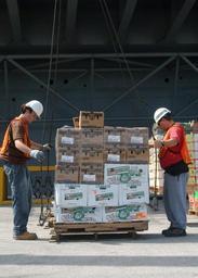 Keywords: US Navy 050920-N-9867P-001 Civilian contractors load pallets of food supplies onto the amphibious assault ship USS Bataan (LHD 5) while pierside in Mayport, Fla.jpg en Mayport Fla Sept 20 2005 - Civilian contractors load pallets of food supplies onto the amphibious assault ship USS Bataan LHD 5 while pierside in Mayport Fla Bataan is currently on board Naval Station Mayport taking-on food and stores in the event that the ship is needed for assistance in the wake of Hurricane Rita U S Navy photo by Photographer's Mate 2nd Class Scott Phillips RELEASED 2005-09-20 050920-N-9867P-001 Navy http //www navy mil/view_image asp id 28455 U S Navy photo by Photographer's Mate 2nd Class Scott Phillips PD-USGov-Military-Navy Naval Station Mayport Aboard USS Bataan LHD-5 |