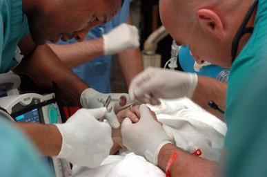 View Original:US_Navy_050930-N-6843I-016_U.S._Navy_Ens._Frank_Percy,_right,_a_physician^rsquo,s_assistant_from_Naval_Medical_Center_San_Diego,_works_along_side_a_medical_student_from_University_of_Southern_California_Medical_Center_to_remove.jpg (2464x1632)