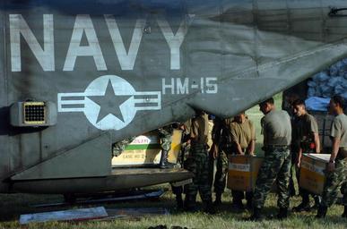 Keywords: US Navy 051014-N-8796S-001 Pakistani soldiers load medical supplies onto a U.S. Navy MH-53E Sea Stallion helicopter in Chaklala, Pakistan.jpg en Chaklala Pakistan Oct 14 2005 - Pakistani soldiers load medical supplies onto a U S Navy MH-53E Sea Stallion helicopter assigned to Helicopter Mine Countermeasure Squadron Fifteen HM-15 in Chaklala Pakistan Two MH-53E helicopters from the squadron's Bahrain detachment made the 3-day flight to northern Pakistan to assist in the relief efforts in progress The United States government is participating in a multinational humanitarian assistance and support effort led by the Pakistani Government to bring aid to victims of the devastating earthquake that struck the region Oct 8 2005 U S Navy photo by Photographer s Mate 2nd Class Timothy Smith RELEASED 2005-10-14 051014-N-8796S-001 Navy http //www navy mil/view_image asp id 28893 U S Navy photo by Photographer s Mate 2nd Class Timothy Smith PD-USGov-Military-Navy Images from US Navy location Chaklala Pakistan 2005 Kashmir earthquake relief efforts MH-53E Sea Dragon Helicopter Mine Countermeasures Squadron 15 United States Navy |