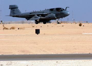 | Keywords: US Navy 051114-N-9362D-015 An EA-6B Prowler, assigned to the Shadowhawks of Electronic Attack Squadron One Four One (VAQ-141), taxis down the runway at the Al Asad Air Base.jpg en Al Asad Iraq Nov 14 2005 - An EA-6B Prowler assigned to the Shadowhawks of Electronic Attack Squadron One Four One VAQ-141 taxis down the runway at the Al Asad Air Base A detachment of the Shadowhawks is stationed at Al Asad flying missions in support of the Global War on Terrorism VAQ-141 is assigned to Carrier Air Wing Eight CVW-8 currently embarked aboard USS Theodore Roosevelt CVN 71 U S Navy photo by Photographer's Mate 3rd Class Randall Damm RELEASED 2005-11-14 051114-N-9362D-015 Navy http //www navy mil/view_image asp id 30146 U S Navy photo by Photographer's Mate 3rd Class Randall Damm PD-USGov-Military-Navy Al Asad Airbase Military aircraft in the Iraq War Grumman EA-6 Prowler Aboard USS Theodore Roosevelt CVN-71 Electronic Attack Squadron 141 United States Navy |
