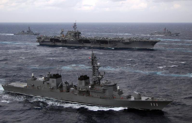 | Keywords: US Navy 051115-N-8492C-141 The Japan Maritime Self-Defense Force (JMSDF) destroyer JDS Onhami (DD 111) sails in formation with other JMSDF ships and ships assigned to the USS Kitty Hawk Carrier Strike Group.jpg JDS Ōnami DD 111 sails in formation with other JMSDF ships and ships assigned to the USS Kitty Hawk Carrier Strike Group The Kitty Hawk Carrier Strike Group is currently conducting the bilateral Annual Exercise 2005 ANNUALEX with Japan Maritime Self-Defense Force ANNUALEX focuses on improving the military-to-military relationship between the U S and Japan The purpose of ANNUALEX is to improve bilateral interoperability defend Japan against maritime threats and to improve capability for surface warfare air defense and undersea warfare U S Navy photo by Chief Photographer's Mate Todd Cichonowicz RELEASED 2005-11-15 051115-N-8492C-141 Navy http //www navy mil/view_image asp id 29958 U S Navy photo by Chief Photographer's Mate Todd Cichonowicz PD-USGov-Military-Navy General views of USS Kitty Hawk CV-63 JS Ōnami DD-111 International groups of naval ships |
