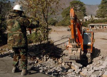 | Keywords: US Navy 051118-N-1261P-058 U.S. Navy Chief Utilitiesman Collie Merchant directs an excuvator that is operated by a Pakistani engineer at the Government Pilot School in Pakistan.jpg en Muzaffarabad Pakistan Nov 18 2005 - U S Navy Chief Utilitiesman Collie Merchant directs an excuvator that is operated by a Pakistani engineer at the Government Pilot School in Pakistan The United States Government is participating in a multinational humanitarian assistance and support effort led by the Pakistani Government to bring aid to victims of the devastating earthquake that struck the region Oct 8 2005 U S Navy photo by Photographer's Mate 2nd Class Eric S Powell RELEASED 2005-11-18 051118-N-1261P-058 Navy http //www navy mil/view_image asp id 30118 U S Navy photo by Photographer's Mate 2nd Class Eric S Powell PD-USGov-Military-Navy 2005 Kashmir earthquake relief efforts Muzaffarabad in 2005 after Kashmir earthquake Wheeled 360 degree diggers Hitachi excavators United States Navy in Pakistan Excavators in Pakistan |