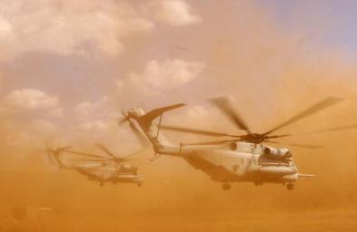 Keywords: US Navy 051120-F-7234P-026 U.S. Marine Corps CH-53E Super Stallion helicopters, blow sand and rocks as they take off after delivering pellets of food and water for the U.S. military personnel.jpg en Harar Ethiopia Nov 20 2005 - U S Marine Corps CH-53E Super Stallion helicopters blow sand and rocks as they take off after delivering pellets of food and water for the U S military personnel stationed in Harar Ethiopia U S Air Force photo by Staff Sgt Stacy L Pearsall RELEASED 2005-11-20 051120-F-7234P-026 Navy http //www navy mil/view_image asp id 30185 U S Navy photo PD-USGov-Military-Navy United States Navy in Harar CH-53E US Marine Corps Dust |