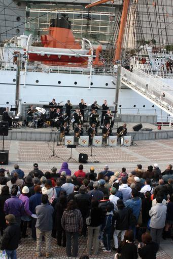 | Keywords: US Navy 051120-N-5952N-002 The Commander, U.S. Seventh Fleet Band performs in front of the exhibit ship Nippon Maru near the Yokohama Maritime Museum.jpg en Yokohama Japan Nov 20 2005 - The Commander U S Seventh Fleet Band performs in front of the exhibit ship Nippon Maru near the Yokohama Maritime Museum The band entertained hundreds of enthusiastic fans as they played big band and jazz music during the hour-long free show The museum was established in 1989 to commemorate the 130th anniversary of the opening of Yokohama's port U S Navy photo by Chief Journalist Brian Naranjo RELEASED 2005-11-20 051120-N-5952N-002 Navy http //www navy mil/view_image asp id 30104 U S Navy photo by Chief Journalist Brian Naranjo PD-USGov-Military-Navy Images from US Navy location Yokohama Japan Seventh Fleet Band Nippon Maru ship 1930 November 2005 in Japan |