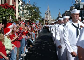 | Keywords: US Navy 051204-N-6645H-139 Sailors from various U.S. Navy commands throughout Navy's Southeast Region march before Cinderella's Castle before entering onto Main St. inside Walt Disney World's Magic Kingdom.jpg en Orlando Fla Dec 4 2005 - Sailors from various U S Navy commands throughout Navy's Southeast Region march before Cinderella's Castle before entering onto Main St inside Walt Disney World's Magic Kingdom The Sailors were greeted by family members and guests and joined Disney World's Military Salute for its 2005 Christmas Day Parade taping U S Navy photo by Photographer s Mate 3rd Class Adam J Herrada RELEASED 2005-12-04 051204-N-6645H-139 Navy http //www navy mil/view_image asp id 30466 U S Navy photo by Photographer s Mate 3rd Class Adam J Herrada PD-USGov-Military-Navy Images from US Navy location Orlando Fla |