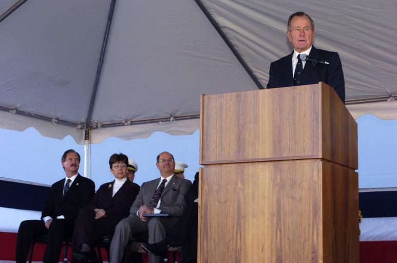 MAKE A MEME View Large Image Navy 060114-N-2568S-088 The 41st President of the United States George H. W. Bush delivers his remarks as keynote speaker during the commissioning of the Navy^rsquo,s newest warship, the amphibious transport dock ship USS Sa.jpg en ...