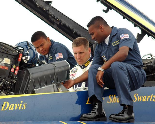 Keywords: US Navy 060227-N-0050T-063 Aviation Machinist^rsquo,s Mate 1st Class Patrick Palma, left, and U.S. Marine Sgt. Deo Harrypersaud, right, prepare Busch Series NASCAR driver Mark McFarland, prior to a VIP demonstration flight.jpg en El Centro Calif Feb 27 2006 - Aviation Machinist s Mate 1st Class Patrick Palma left and U S Marine Sgt Deo Harrypersaud right prepare Busch Series NASCAR driver Mark McFarland prior to a VIP demonstration flight with the U S Navy flight demonstration team Blue Angels on board Naval Air Facility El Centro McFarland is the No 88 driver for the U S Navy s Accelerate Your Life Chevrolet Monte Carlo Team owner and Nextel Cup driver Dale Earnhardt Jr also received a VIP flight and took time for an autograph session with Sailors and Marines on board the Air Facility U S Navy photo by Photographer s Mate 2nd Patricia R Totemeier RELEASED 2006-02-27 060227-N-0050T-063 Navy http //www navy mil/view_image asp id 32334 U S Navy photo by Photographer s Mate 2nd Patricia R Totemeier PD-USGov-Military-Navy Naval Air Facility El Centro |