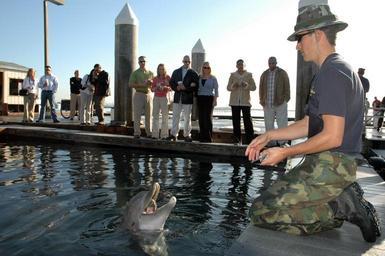 Keywords: US Navy 060302-N-0946B-001 Hull Technician Fireman Stefan Gingerich assigned to Naval Special Clearance Team One works with a dolphin, named Ten, during a demonstration on board Naval Base Point Loma.jpg en San Diego March 2 2006 - Hull Technician Fireman Stefan Gingerich assigned to Naval Special Clearance Team One works with a dolphin named Ten during a demonstration on board Naval Base Point Loma Submarine Surface and Air Forces Pacific Sailors of the Year SOY along with their families were the special guests for the exhibition The submarine surface and air Sailors were visiting San Diego for their respective force-wide SOY competitions U S Navy photo by Journalist 1st Class Kristina Brockman RELEASED 2006-03-02 060302-N-0946B-001 Navy http //www navy mil/view_image asp id 32458 U S Navy photo by Journalist 1st Class Kristina Brockman PD-USGov-Military-Navy Naval Base Point Loma United States Navy Marine Mammal Program People with sea mammals Tursiops truncatus captive United States Naval Special Clearance Team One |