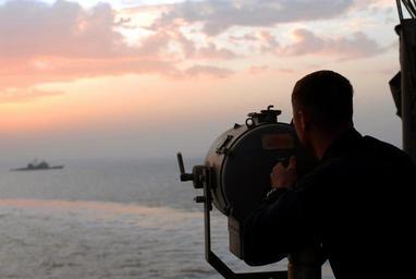| Keywords: US Navy 060403-N-2959L-021 Quartermaster Seaman Caleb Robbins stands by to send a message to the guided-missile cruiser USS Lake Champlain (CG 57) by flashing light on the signal bridge aboard the Nimitz-class aircraft carrier.jpg en Persian Gulf April 3 2006 Quartermaster Seaman Caleb Robbins stands by to send a message to the guided-missile cruiser USS Lake Champlain CG 57 by flashing light on the signal bridge aboard the Nimitz-class aircraft carrier USS Ronald Reagan CVN 76 Reagan is currently deployed as part of a routine rotation of U S maritime forces in support of Operations Iraqi Freedom and Enduring Freedom as well as conducting Maritime Security Operations MSO in the region MSO helps deny international terrorists use of the maritime environment as a venue for attack or to transport personnel weapons or other material U S Navy photo by Photographer's Mate 3rd Class Dominique M Lasco RELEASED 2006-04-03 060403-N-2959L-021 Navy http //www navy mil/view_image asp id 33312 U S Navy photo by Photographer's Mate 3rd Class Dominique M Lasco PD-USGov-Military-Navy Aboard USS Ronald Reagan CVN-76 Naval signalling lamps |