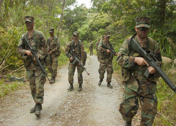 Keywords: US Navy 060404-N-3560G-007 Seabees assigned to Naval Mobile Construction Battalion Four (NMCB-4) execute security patrol maneuvers.jpg en Okinawa Japan April 4 2006 - Seabees assigned to Naval Mobile Construction Battalion Four NMCB-4 execute security patrol maneuvers during a field exercise in Okinawa s central area NMCB-4 is onboard Camp Shields in Okinawa for a scheduled six-month Pacific deployment U S Navy photo by Photographer s Mate 3rd Class Ronald Gutridge RELEASED 2006-04-04 060404-N-3560G-007 Navy http //www navy mil/view_image asp id 33495 U S Navy photo by Photographer s Mate 3rd Class Ronald Gutridge PD-USGov-Military-Navy ImageNote 1 1502 407 593 746 2100 1500 2 m16 ImageNoteEnd 1 Naval Mobile Construction Battalion 4 M16 rifle with blank-firing adaptor Images from US Navy location Okinawa Japan |
