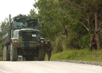 Keywords: US Navy 060405-N-3560G-022 Members of Naval Mobile Construction Battalion Four (NMCB-4) Seabees conduct convoy immediate action drills during a field exercise in Okinawa's Central Training Area.jpg en Okinawa Japan April 5 2006 - Members of Naval Mobile Construction Battalion Four NMCB-4 Seabees conduct convoy immediate action drills during a field exercise in Okinawa's Central Training Area NMCB-4 is onboard Camp Shields in Okinawa for a scheduled six-month Pacific deployment U S Navy photo by Photographer's Mate 3rd Class Ronald Gutridge RELEASED Trees are Pinus luchuensis 2006-04-05 060405-N-3560G-022 Navy http //www navy mil/view_image asp id 33501 U S Navy photo by Photographer's Mate 3rd Class Ronald Gutridge PD-USGov-Military-Navy Pinus luchuensis Naval Mobile Construction Battalion 4 Front views of trucks Oshkosh MTVR Images from US Navy location Okinawa Japan Central Training Area |