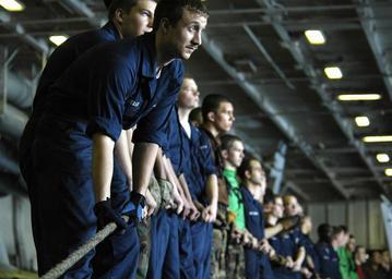 | Keywords: US Navy 060414-N-9898L-049 Sailors aboard USS Abraham Lincoln (CVN 72) wait for the command to heave their line during an underway replenishment.jpg en Pacific Ocean April 14 2006 - Sailors aboard USS Abraham Lincoln CVN 72 wait for the command to heave their line during an underway replenishment with the Military Sealift Command MSC underway replenishment Oiler USNS Walter S Diehl T-AO 193 Lincoln and embarked Carrier Air Wing Two CVW-2 are currently underway to the Western Pacific for a scheduled six-month deployment U S Navy photo by Photographer's Mate Airman Geoffrey Lewis RELEASED 2006-04-14 060414-N-9898L-049 Navy http //www navy mil/view_image asp id 33574 U S Navy photo by Photographer's Mate Airman Geoffrey Lewis PD-USGov-Military-Navy Aboard USS Abraham Lincoln CVN-72 |