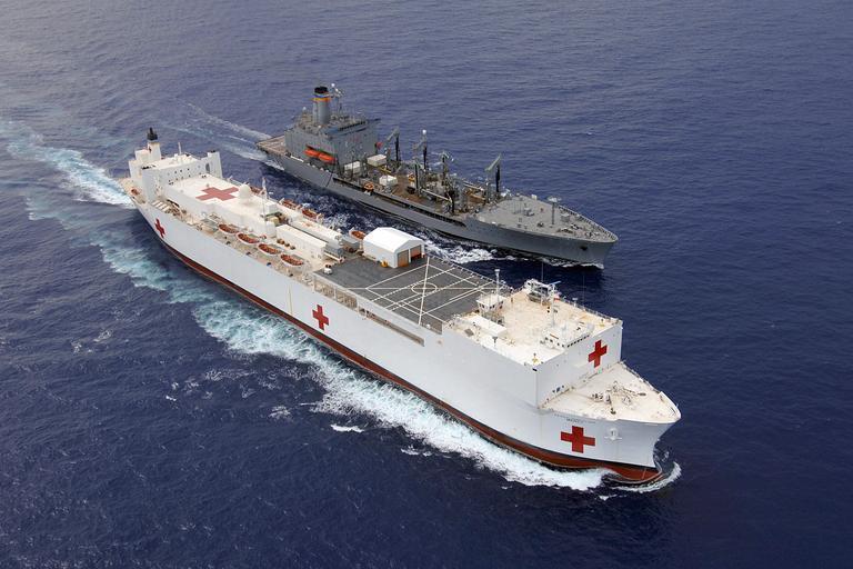 Keywords: US Navy 060516-N-6501M-008 USNS Mercy performs an underway replenishment operation with MSC replenishment oiler USNS Pecos.jpg en Pacific Ocean May 16 2006 - The Military Sealift Command MSC hospital ship USNS Mercy T-AH 19 performs an underway replenishment operation with MSC replenishment oiler USNS Pecos T-AO 197 Mercy is conducting a five-month humanitarian deployment to South and Southeast Asia and the Pacific Islands The medical crew aboard Mercy will provide general and ophthalmology surgery basic medical evaluation and treatment preventive medicine treatment dental screenings and treatment optometry screenings eyewear distribution public health training and veterinary services as requested by the host nations Mercy is uniquely capable of supporting medical and humanitarian assistance needs and is configured with special medical equipment and a robust multi-specialized medical team who can provide a range of services ashore as well as aboard the ship The medical staff is augmented with an assistance crew many of whom are part of non-governmental organizations that have significant medical capabilities U S Navy photo by Chief Photographer's Mate Edward G Martens RELEASED 2006-05-16 060516-N-6501M-008 Navy http //www navy mil/view_image asp id 34588 U S Navy photo by Chief Photographer's Mate Edward G Martens PD-USGov-Military-Navy General views of USNS Mercy T-AH-19 |
