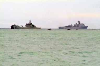 | Keywords: US Navy 060519-N-4772B-214 The amphibious dock landing ship USS Harpers Ferry (LSD 49) is anchored in the distance as the Royal Thai Navy tank landing ship Sichang (LST 721) sends Royal Thai Marine amphibious vehicles to the be.jpg en Yao Thailand May 19 2006 - The amphibious dock landing ship USS Harpers Ferry LSD 49 is anchored in the distance as the Royal Thai Navy tank landing ship Sichang LST 721 sends Royal Thai Marine amphibious vehicles to the beach as part of exercise Cobra Gold 2006 Cobra Gold is a combined annual joint training exercise aimed at developing interoperability strengthening relationships between services and developing cross-cultural understanding among participating nations U S Navy photo by Journalist 2nd Class Brian P Biller RELEASED 2006-05-19 060519-N-4772B-214 Navy http //www navy mil/view_image asp id 34693 U S Navy photo by Journalist 2nd Class Brian P Biller PD-USGov-Military-Navy Images from US Navy location Yao Thailand Cobra Gold 2006 General views of USS Harpers Ferry LSD-49 |