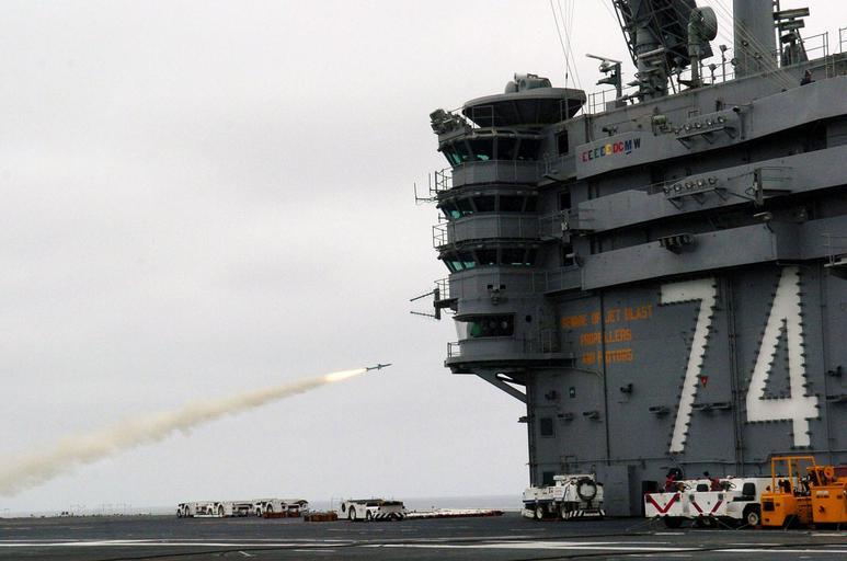 Keywords: US Navy 060607-N-0684R-020 A RIM-7 NATO Sea Sparrow surface-to-air missile launches from the Nimitz-class aircraft carrier USS John C. Stennis (CVN 74) during an exercise designed to demonstrate the ship's self-defense combat s.jpg en Pacific Ocean Dec 13 2005 - A RIM-7 NATO Sea Sparrow surface-to-air missile launches from the Nimitz-class aircraft carrier USS John C Stennis CVN 74 during an exercise designed to demonstrate the ship's self-defense combat system The RIM-7 Sea Sparrow is a medium-range rapid-reaction missile weapon system that provides the capability of destroying hostile aircraft anti-ship missiles and surface missile platforms Stennis is currently conducting training operations off the coast of Southern California U S Navy photo by Photographer's Mate 3rd Class Ron Reeves RELEASED 2005-12-13 060607-N-0684R-020 Navy http //www navy mil/view_image asp id 35540 U S Navy photo by Photographer's Mate 3rd Class Ron Reeves PD-USGov-Military-Navy Launches of RIM-7 Sea Sparrow missiles Aboard USS John C Stennis CVN-74 Smoke trails |