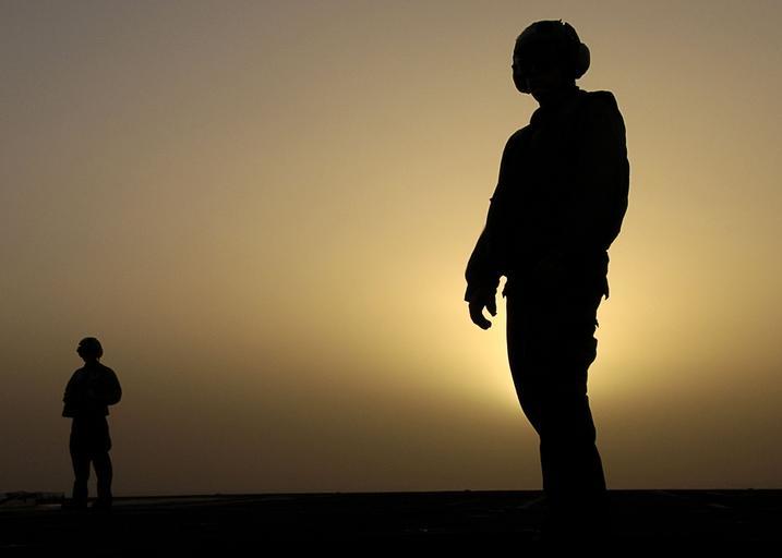 Keywords: US Navy 060611-N-6293B-061 Aviation Boatswain's Mate Equipment Airman Stephen Williams, and Aviation Boatswain's Mate 3rd Class Brian Shelton, wait to man a steam-driven catapult on the flight deck of the nuclear-powered aircra.jpg en Persian Gulf June 11 2006 - Aviation Boatswain's Mate Equipment Airman Stephen Williams and Aviation Boatswain's Mate 3rd Class Brian Shelton wait to man a steam-driven catapult on the flight deck of the nuclear-powered aircraft carrier USS Enterprise CVN 65 The Enterprise Carrier Strike group is currently deployed as part of a routine rotation of U S maritime forces in support of the global war on terrorism as well as conducting Maritime Security Operations MSO in the region U S Navy photo by Photographer's Mate 3rd Class Marcel A Barbeau RELEASED 2006-06-11 060611-N-6293B-061 Navy http //www navy mil/view_image asp id 35693 U S Navy photo by Photographer's Mate 3rd Class Marcel A Barbeau PD-USGov-Military-Navy Aviation Boatswain's Mates Aboard USS Enterprise CVN-65 Silhouettes of men |