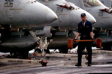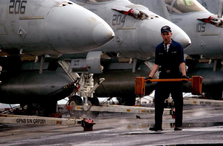 | Keywords: US Navy 060613-N-5549O-058 Acting as the starboard wing safety observer, Airman Chad Yarbrough walks alongside an F-A-18C Hornet as the aircraft is moved across the flight of the Nimitz-class aircraft carrier USS Ronald Reagan.jpg en Hong Kong June 13 2006 - Acting as the starboard wing safety observer Airman Chad Yarbrough walks alongside an F/A-18C Hornet as the aircraft is moved across the flight of the Nimitz-class aircraft carrier USS Ronald Reagan CVN 76 Reagan and Carrier Air Wing One Four CVW-14 are currently on a regularly scheduled deployment in support of the global war on terrorism as well as conducting Maritime Security Operations MSO in the region U S Navy photo by Photographer's Mate 3rd Class Kevin S O'Brien RELEASED 2006-06-13 060613-N-5549O-058 Navy http //www navy mil/view_image asp id 35753 U S Navy photo by Photographer's Mate 3rd Class Kevin S O'Brien PD-USGov-Military-Navy F/A-18C Hornet on flight decks Flight deck of USS Ronald Reagan CVN-76 Images from US Navy location Hong Kong |