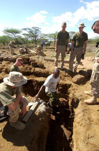 | Keywords: US Navy 060811-N-0411D-021 Kenyan Army Construction Engineer, Gerald Maina, leads U.S. Marines through the construction of an addition to a small school.jpg en Riongo Kenya Aug 11 2006 - Kenyan Army Construction Engineer Gerald Maina leads U S Marines through the construction of an addition to a small school U S Marine 6th Engineering Support Battalion EBS worked together with Kenyan Army Construction Engineers to build a water tower capable of holding 50 cubic meters of water and a school building addition from cement blocks The 6th EBS is participating in Natural Fire as their period of Reserve Annual Training Natural Fire is the largest combined exercise between Eastern African community nations and the United States It will include medical veterinary and engineering civic affairs programs in addition to military exercises U S Navy photo by Mass Communication Specialist 2nd Class Roger S Duncan RELEASED 2006-08-11 060811-N-0411D-021 Navy http //www navy mil/view_image asp id 38372 U S Navy photo by Mass Communication Specialist 2nd Class Roger S Duncan PD-USGov-Military-Navy United States Navy in Riongo Kenya People of the Kenya Army |