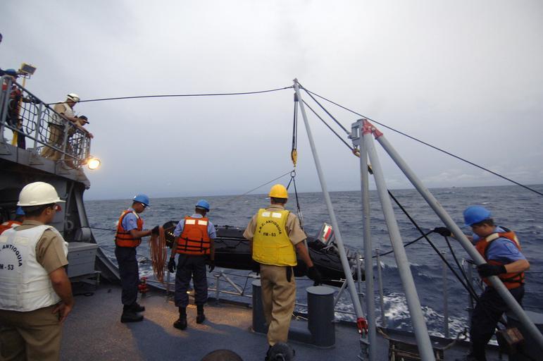 | Keywords: US Navy 060826-N-6240R-016 The crew of the Columbian frigate ARC (Armada Republica de Colombia) Antioquia (FL 53), lower a small boat for Visit Board Search and Seizure operations during exercise PANAMAX 2006.jpg en Caribbean Sea Aug 26 2006 - The crew of the Columbian frigate ARC Armada Republica de Colombia Antioquia FL 53 lower a small boat for Visit Board Search and Seizure operations during exercise PANAMAX 2006 PANAMAX brings together civil naval and air forces from 18 countries to conduct multi-national training designed to improve security and defense of the Panama Canal U S Navy photo by Mass Communication Specialist 1st Class Richard Rosser RELEASED 2006-08-26 060826-N-6240R-016 Navy http //www navy mil/view_image asp id 38581 U S Navy photo by Mass Communication Specialist 1st Class Richard Rosser PD-USGov-Military-Navy Images from US Navy location Caribbean Sea Visit Board Search and Seizure ARC Antioquia FM-53 |