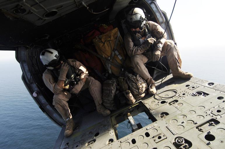 MAKE A MEME View Large Image Navy 061122-N-8148A-088 Air crewman assigned to.jpg en Arabian Sea Nov 22 2006 Air crewman assigned to Dragon Whales of Helicopter Sea Combat Squadron HSC-28 Jonathan DeJesus left communicates with Christopher Adams while on board an MH-60S ...