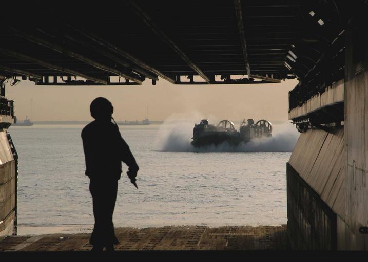| Keywords: US Navy 061127-N-0458E-043 A Sailor aboard the multipurpose amphibious assault ship USS Wasp (LHD 1) guides a Landing Craft Air Cushion (LCAC) into the well deck during LCAC operations.jpg en Atlantic Ocean Nov 27 2006 - A Sailor aboard the multipurpose amphibious assault ship USS Wasp LHD 1 guides a Landing Craft Air Cushion LCAC into the well deck during LCAC operations LCAC's are one of the methods Wasp uses to send Marines and their supplies ashore Wasp is currently in transit to Philadelphia to provide support during the festivities surrounding the Army-Navy game U S Navy photo by Mass Communication Specialist 2nd Class Katie Earley RELEASED 2006-11-27 061127-N-0458E-043 Navy http //www navy mil/view_image asp id 41421 U S Navy photo by Mass Communication Specialist 2nd Class Katie Earley PD-USGov-Military-Navy USS Wasp LHD-1 well deck Well decks Landing Craft Air Cushion |
