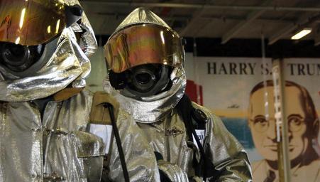 | Keywords: US Navy 061216-N-2880M-010 Sailors assigned to repair locker 7, don protective proximity gear during a shipboard firefighting drill.jpg  en Portsmouth Va Dec 16 2006 - Sailors assigned to repair locker 7 don protective proximity gear during a shipboard firefighting drill aboard the Nimitz-class aircraft carrier USS Harry S Truman CVN 75 Truman is currently conducting a planned incremental availability PIA at Norfolk Naval Shipyards NNSY Portsmouth Va U S Navy Photo by Mass Communication Specialist Seaman Joshua A Moore RELEASED 2006-12-16 061216-N-2880M-010 Navy http //www navy mil/view_image asp id 41640 U S Navy Photo by Mass Communication Specialist Seaman Joshua A Moore PD-USGov-Military-Navy Portsmouth Virginia Aboard USS Harry S Truman CVN-75 Fire proximity suits |