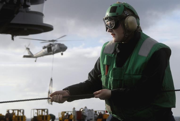 | Keywords: US Navy 070112-N-1205S-193 Seaman Karisa Russell tends the phone and distance line on the flight deck aboard the nuclear powered aircraft carrier USS Nimitz (CVN 68).jpg  en Pacific Ocean Jan 12 2007 - Seaman Karisa Russell tends the phone and distance line on the flight deck aboard the nuclear powered aircraft carrier USS Nimitz CVN 68 during a underway replenishment with the Military Sealift Command MSC ammunition ship USNS Shasta T-AE 33 Nimitz is currently underway conducting routine training exercises off the coast of Southern California U S Navy photo by Mass Communication Specialist 2nd Class Jeremiah Sholtis RELEASED 2007-01-12 070112-N-1205S-193 Navy http //www navy mil/view_image asp id 42080 U S Navy photo by Mass Communication Specialist 2nd Class Jeremiah Sholtis PD-USGov-Military-Navy Aboard USS Nimitz CVN-68 |