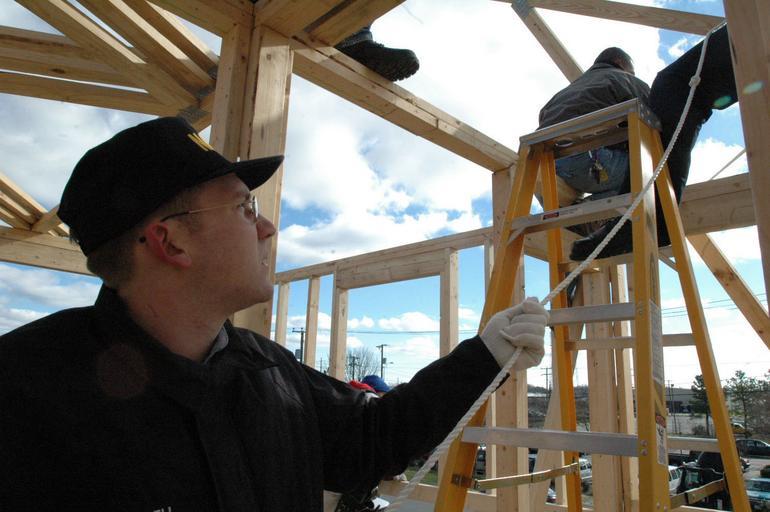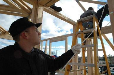 | Keywords: US Navy 070117-N-2456S-107 Seaman Robert Purcell, a Sailor stationed aboard amphibious transport dock USS Nashville (LPD 13), holds a safety line to help move a roof truss to the top of a house being built for Habitat for Human.jpg en Norfolk Va Jan 17 2007 - Seaman Robert Purcell a Sailor stationed aboard amphibious transport dock USS Nashville LPD 13 holds a safety line to help move a roof truss to the top of a house being built for Habitat for Humanity in Norfolk Va The work being done by Nashville Sailors is part of a ship-wide goal to dedicate 6 000 hours of community service time to the local area this year U S Navy photo by Mass Communication Specialist Seaman John Suits RELEASED 2007-01-17 070117-N-2456S-107 Navy http //www navy mil/view_image asp id 42257 U S Navy photo by Mass Communication Specialist Seaman John Suits PD-USGov-Military-Navy Naval Station Norfolk Aboard USS Nashville LPD-13 |