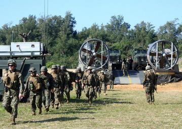 Keywords: US Navy 070206-N-6710M-002 Marines assigned to the 31st Marine Expeditionary Unit exit a Landing Craft Air Cushion (LCAC) onto the shores of Okinawa, Japan, for training.jpg en Okinawa Japan Feb 6 2007 - Marines assigned to the 31st Marine Expeditionary Unit exit a Landing Craft Air Cushion LCAC onto the shores of Okinawa Japan for training Dock landing ship USS Tortuga LSD 46 and the Essex Amphibious Ready Group ESXARG are currently conducting operations during Blue-Green workups in the vicinity of Okinawa Japan U S Navy photo by Mass Communication Specialist Seaman Brandon Myrick RELEASED 2007-02-06 070206-N-6710M-002 Navy http //www navy mil/view_image asp id 42819 U S Navy photo by Mass Communication Specialist Seaman Brandon Myrick PD-USGov-Military-Navy Aboard USS Tortuga LSD-46 Landing Craft Air Cushion Images from US Navy location Okinawa Japan |