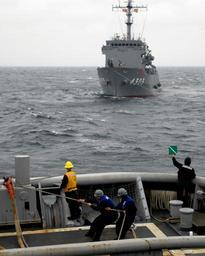 Keywords: US Navy 070315-N-6936D-012 Sailors aboard rescue and salvage ship USS Safeguard (ARS 50) send a messenger line to Japanese Maritime Self-Defense Force (JMSDF) ship JDS Amakusa (AMS 4303) during a towing exercise (TOWEX).jpg en SEA OF JAPAN March 15 2007 Sailors aboard rescue and salvage ship USS Safeguard ARS 50 send a messenger line to Japanese Maritime Self-Defense Force JMSDF ship JDS Amakusa AMS 4303 during a towing exercise TOWEX The two ships conducted the TOWEX to increase their proficiencies in towing operations U S Navy photo by Mass Communication Specialist 3rd Class David Didier RELEASED 2007-03-15 070315-N-6936D-012 Navy http //www navy mil/view_image asp id 44075 U S Navy photo by Mass Communication Specialist 3rd Class David Didier PD-USGov-Military-Navy Aboard USNS Safeguard T-ARS-50 JS Amakusa AMS-4303
