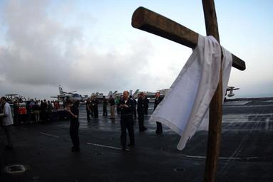 | Keywords: US Navy 070408-N-9928E-099 Sailors enjoy a reception with pastries and fruit provided by supply department after the Easter Sunrise Service on the flight deck of Nimitz-class aircraft carrier USS John C. Stennis (CVN 74).jpg en ARABIAN SEA April 8 2007 - Sailors enjoy a reception with pastries and fruit provided by supply department after the Easter Sunrise Service on the flight deck of Nimitz-class aircraft carrier USS John C Stennis CVN 74 John C Stennis Carrier Strike Group is on a regularly scheduled deployment in support of Maritime Security Operations MSO MSO help set the conditions for security and stability as well as aid counter-terrorism and security efforts to the regional nations U S Navy photo by Mass Communication Specialist Seaman Josue Leopoldo Escobosa RELEASED 2007-04-08 070408-N-9928E-099 Navy http //www navy mil/view_image asp id 44931 U S Navy photo by Mass Communication Specialist Seaman Josue Leopoldo Escobosa PD-USGov-Military-Navy Easter sunrise services Aboard USS John C Stennis CVN-74 |