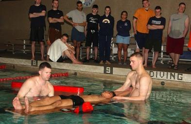 | Keywords: US Navy 070418-N-2143T-002 Lance Cpl. Brandon Coulter, Marine Combat Water Survival Instructor (MCWSI), and Master-at-Arms 1st Class Edwards Wolfe, from Marine Security Forces (MSF), remove Hospital Corpsman 3rd Class Carlos Ag.jpg en BANGOR Wash April 18 2007 - Lance Cpl Brandon Coulter Marine Combat Water Survival Instructor MCWSI and Master-at-Arms 1st Class Edwards Wolfe from Marine Security Forces MSF remove Hospital Corpsman 3rd Class Carlos Aguon safely from the pool during a water rescue training at the Bangor gym U S Navy photo by Mass Communication Specialist 2nd Class Maebel Tinoko RELEASED 2007-04-18 070418-N-2143T-002 Navy http //www navy mil/view_image asp id 45316 U S Navy photo by Mass Communication Specialist 2nd Class Maebel Tinoko PD-USGov-Military-Navy Bangor Washington Master-at-arms |