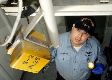 | Keywords: US Navy 070508-N-7981E-004 Culinary Specialist Seaman Ryan P. Anderson, of supply department's S-13 maintenance division, uses a telescoping mirror to check overhead fixtures for signs of corrosion.jpg en BREMERTON Wash May 8 2007 - Culinary Specialist Seaman Ryan P Anderson of supply department's S-13 maintenance division uses a telescoping mirror to check overhead fixtures for signs of corrosion during a Maintenance and Materials Management 3-M space inspection aboard Nimitz-class aircraft carrier USS Abraham Lincoln CVN 72 Lincoln is conducting a shipwide 3-M self assessment in preparation for a scheduled inspection as part of the ship's return to operational status following a dry-dock availability period U S Navy photo by Mass Communication Specialist 3rd Class James R Evans RELEASED 2007-05-08 070508-N-7981E-004 Navy http //www navy mil/view_image asp id 45961 U S Navy photo by Mass Communication Specialist 3rd Class James R Evans PD-USGov-Military-Navy 13 number 25 number 72 number Culinary specialist United States Navy Puget Sound Naval Shipyard in the 2000s Aboard USS Abraham Lincoln CVN-72 Maintenance activity RL |